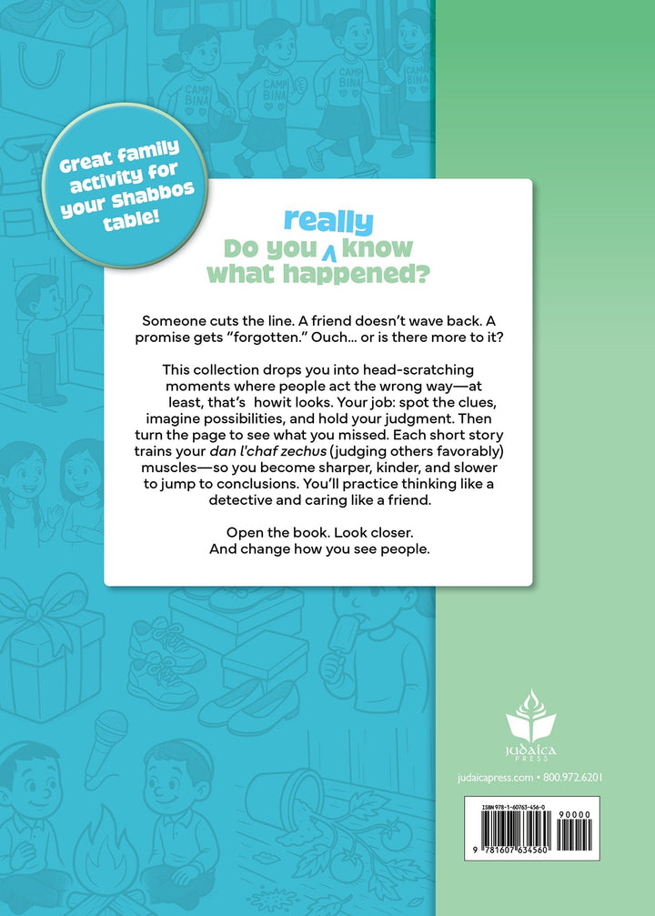 This collection drops you into head-scratching moments where people act the wrong way—at least, that’s how it looks. Your job: spot the clues, imagine possibilities, and hold your judgment. Then turn the page to see what you missed. Each short story trains your dan l’chaf zechus (judging others favorably) muscles—so you become sharper, kinder, and slower to jump to conclusions. You’ll practice thinking like a detective and caring like a friend.