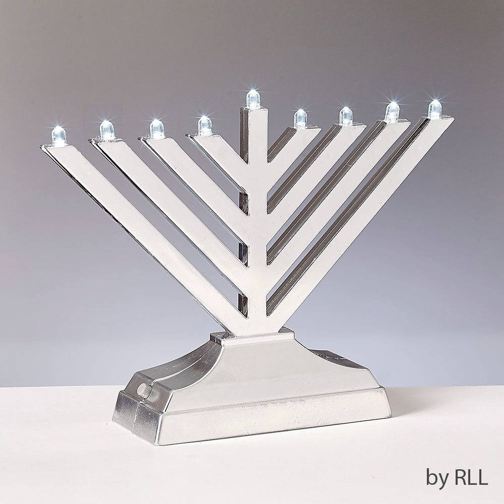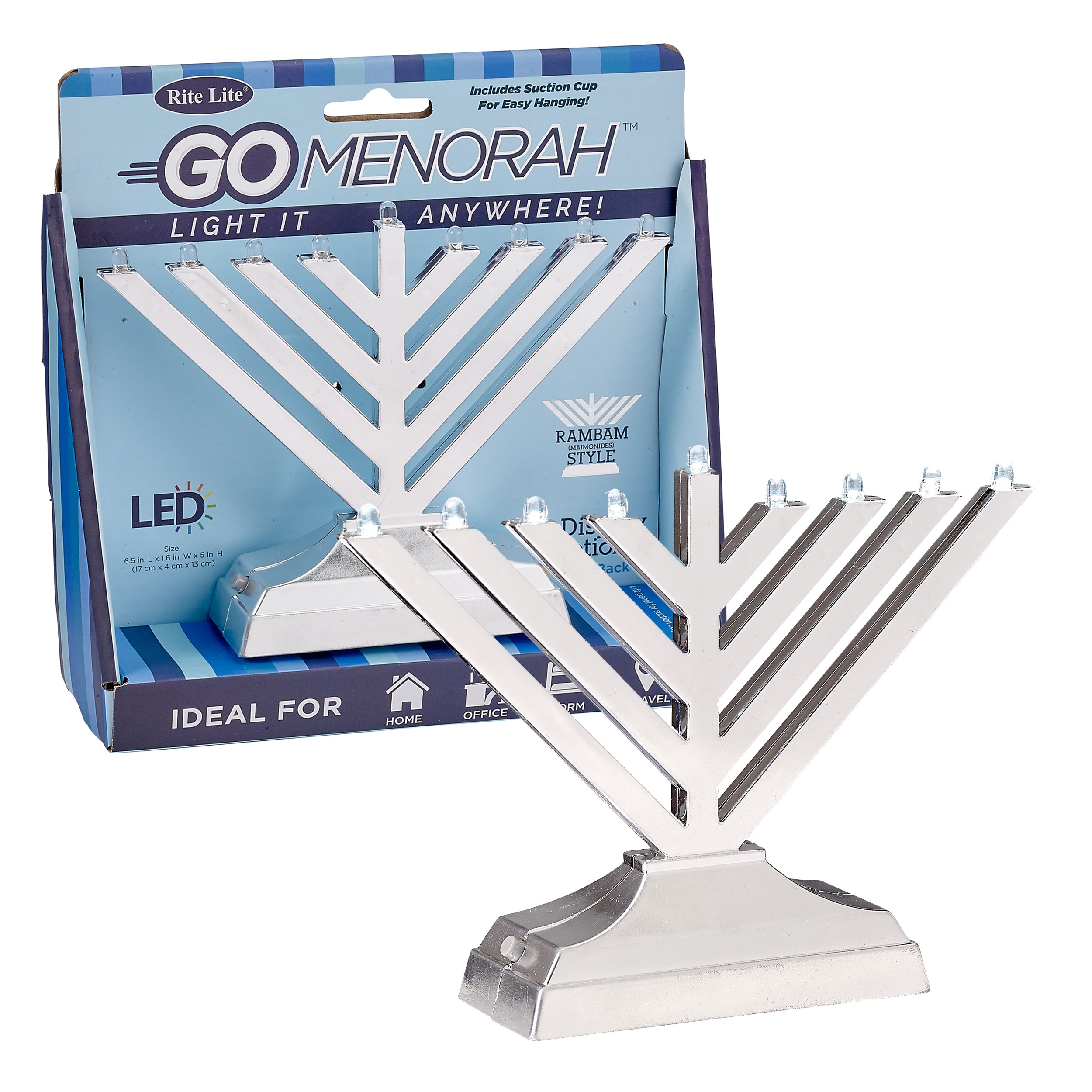 Wherever you go, whatever you do, take this cute Silvertone "Go Menorah" along with you! The "Rambam" design sets this Menorah apart from others. Power it up with batteries or micro-USB (not included ) for the ultimate in convenience and ease of use. In addition to sequential lighting, this Menorah features multiple lighting effects that will set the mood for the ultimate Chanukah experience, wherever you are!