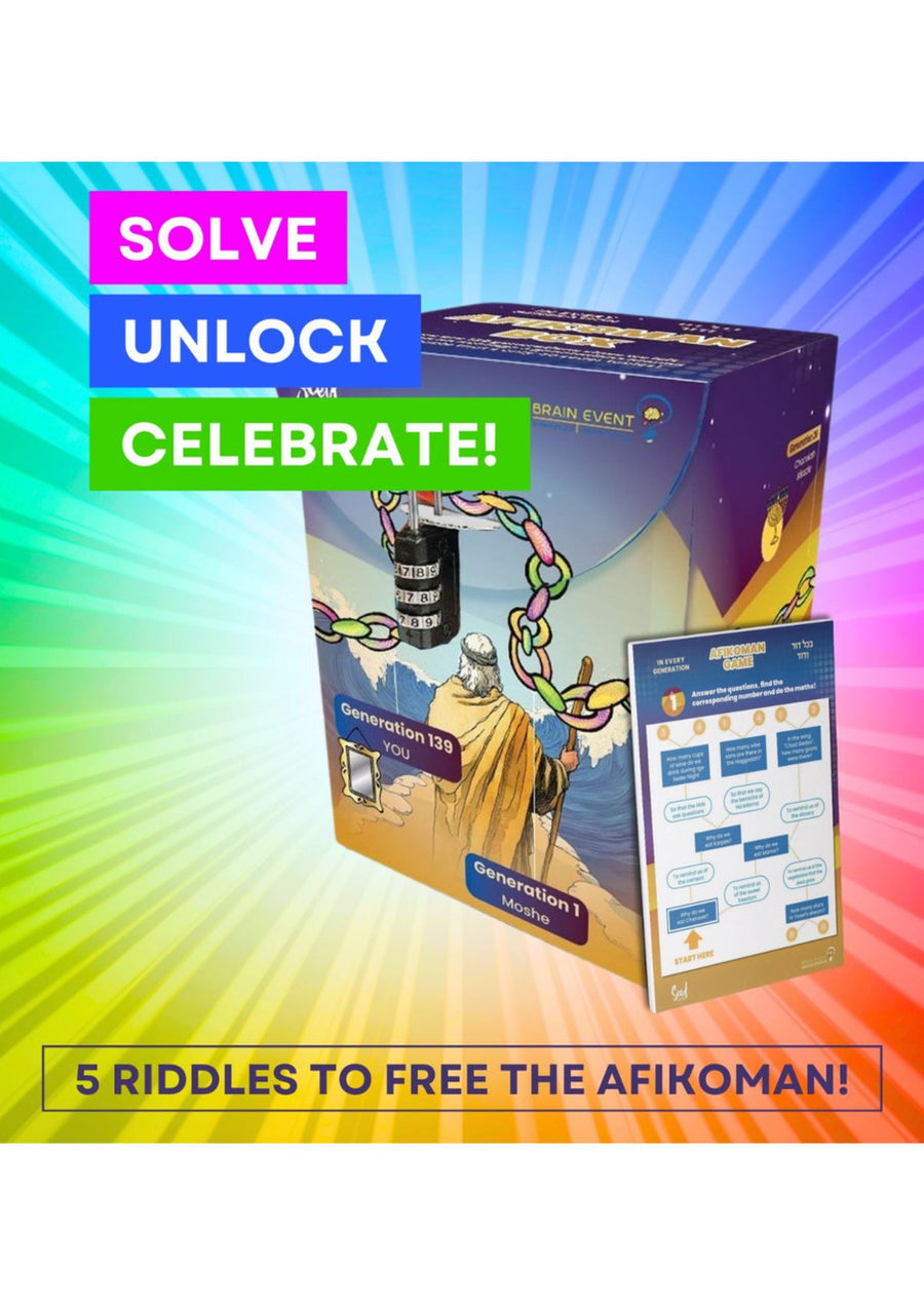 Created by a team of Educators and Game Producers in the UK and Israel – the Afikoman Escape box will change your family Seder Night!Put the Afikoman in the box, lock it and then watch as the children complete the challenges to find the code and unlock the Afikoman!And you may want to put your Afikoman prize in there too!Educational and fun, the ultimate family Seder Night experience!