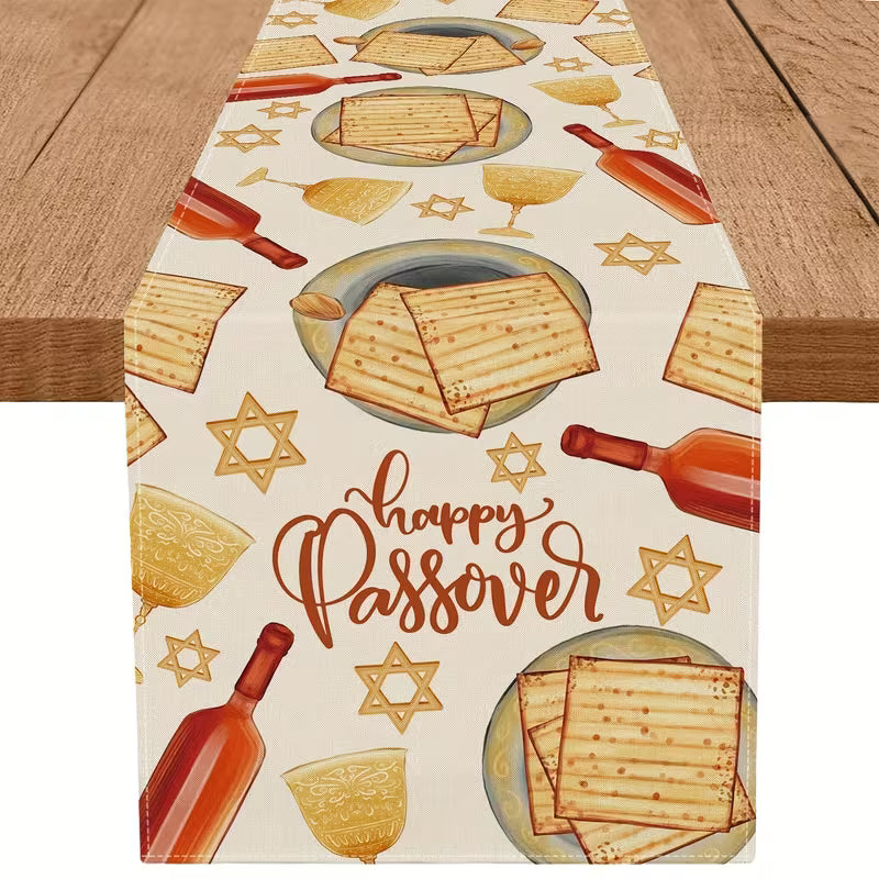 Transform your Seder table into a festive celebration with this elegant Pesach table runner. Featuring traditional holiday motifs and refined design, it brings warmth and spiritual significance to your Pesach gathering.